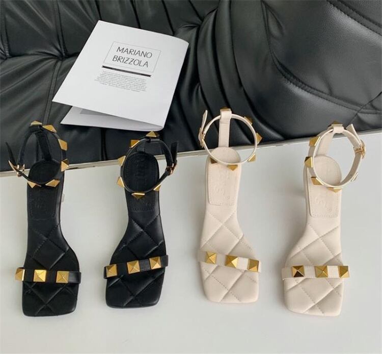 カジュアルコーデの王道アイテム! ハイヒール フレンチスタイル サンダル スリム リベット