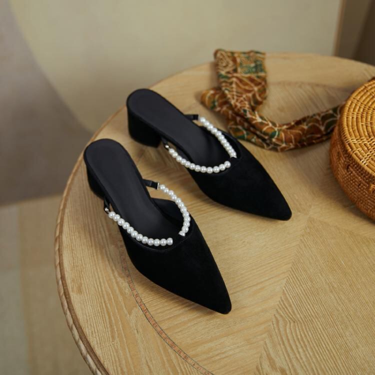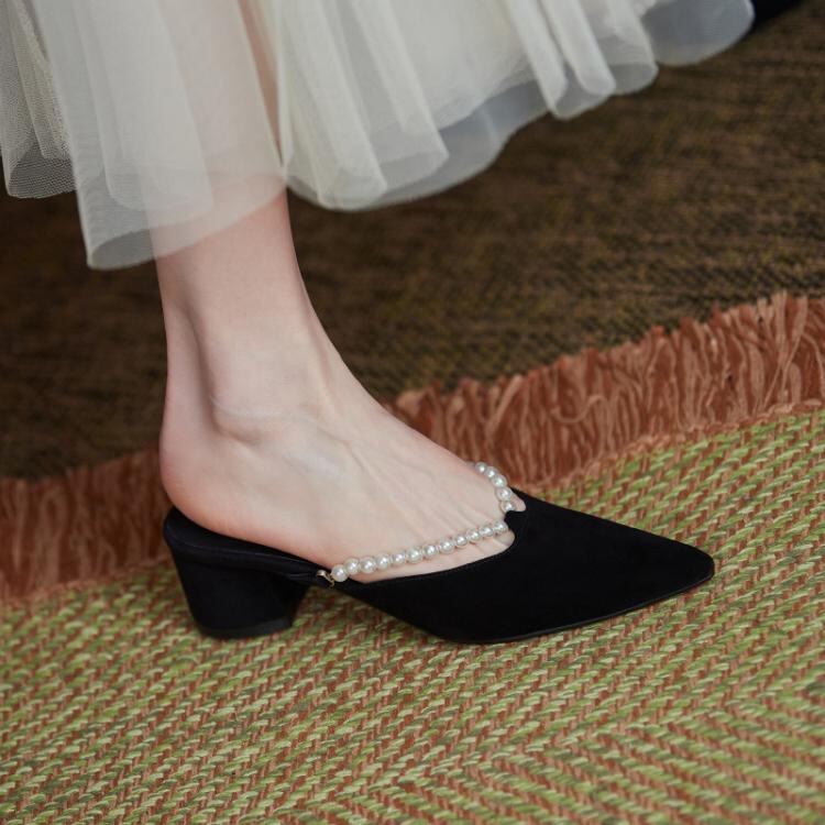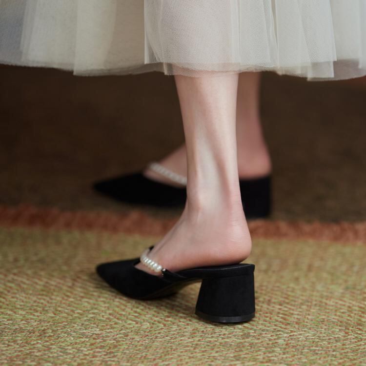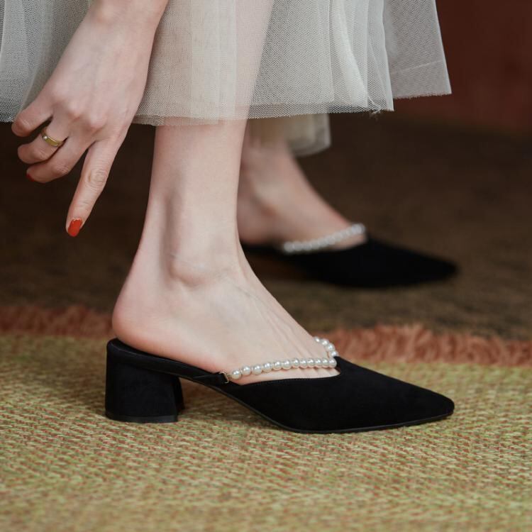 穿きやすく使いやすい 包頭 ハーフスリッパ ロマンティック ファッション ミッドヒール 気質 大人気